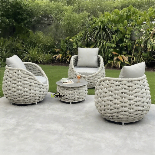 4. Touw buitenbank: het handgevlochten touwontwerp is visueel licht en ademend, en het aluminium frame voegt een modern tintje toe. Door de combinatie van comfort en kunstzinnigheid is het een populaire keuze voor het creëren van een verfijnd balkon.